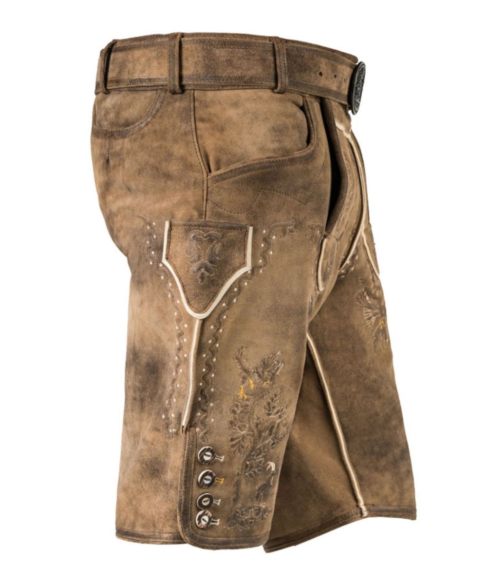 Discover the Ingomar Brown Bavarian Lederhosen, crafted from premium suede-like material with intricate embroidery. Perfect for Oktoberfest and cultural events. Embrace Bavarian tradition in style. Order now!